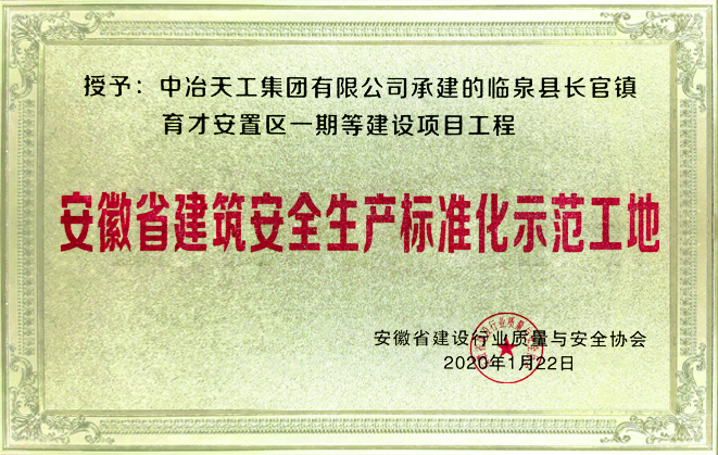 安徽省建筑安全生产标准化示范工地-临泉县长官镇育才安置区一期等建设项目