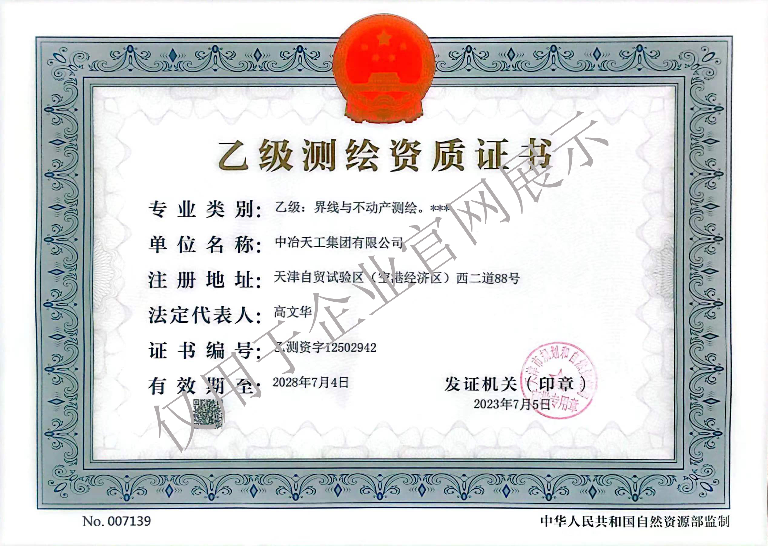 乙级测绘资质(专业类别:界线与不动产测绘)