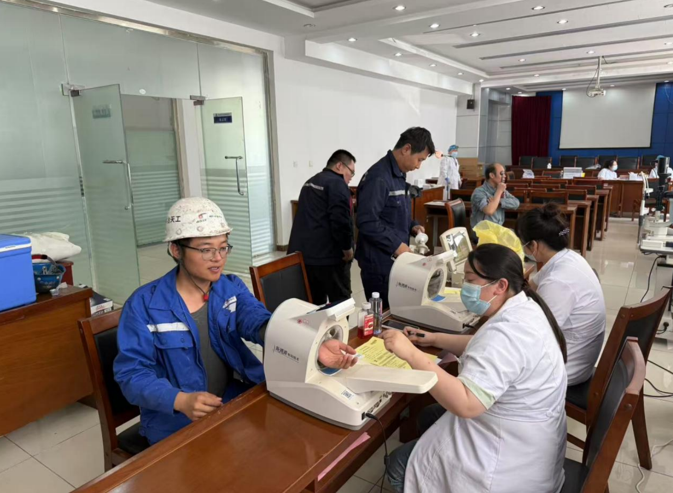 本次體檢秉承著“健康第一、預防為主”的原則特邀請職業病體檢單位到裝備公司駐地設置體檢點,安排作業人員分項體檢檢查。同時考慮到作業人員的工作強度、工作時間、工作環境及特殊職業情況,制定了對應常規檢查及粉塵噪聲等體檢項目。為確保本次體檢活動高質量順利完成及體檢項目流程和人員覆蓋面完整,活動當天醫護人員為100余名工友認真細致的講解了預防保健知識,職業健康危害,并針對個人情況給予健康指導,提高個人健康素養和急救技能水平,進一步筑牢工友們健康保護屏障,讓他們安心的投入到施工生產一線,全力強化安全管控的第一道“防護線”。