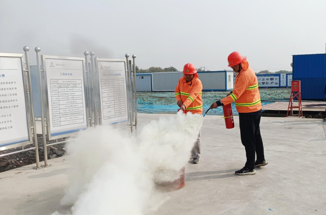 隨后,項目部緊密結合施工現場動火用電這一關鍵風險環節組織開展專題培訓,重點針對施工現場及辦公區域常見的用火用電安全隱患、火災報警方法以及初期火災撲救技巧進行了詳細講解,就如何正確使用滅火器等消防設備進行了操作示范,并邀請參培人員進行模擬實操,逐一糾正操作細節,切實提升施工現場安全防控能力,為筑牢項目生產安全防線提供了有力支撐。