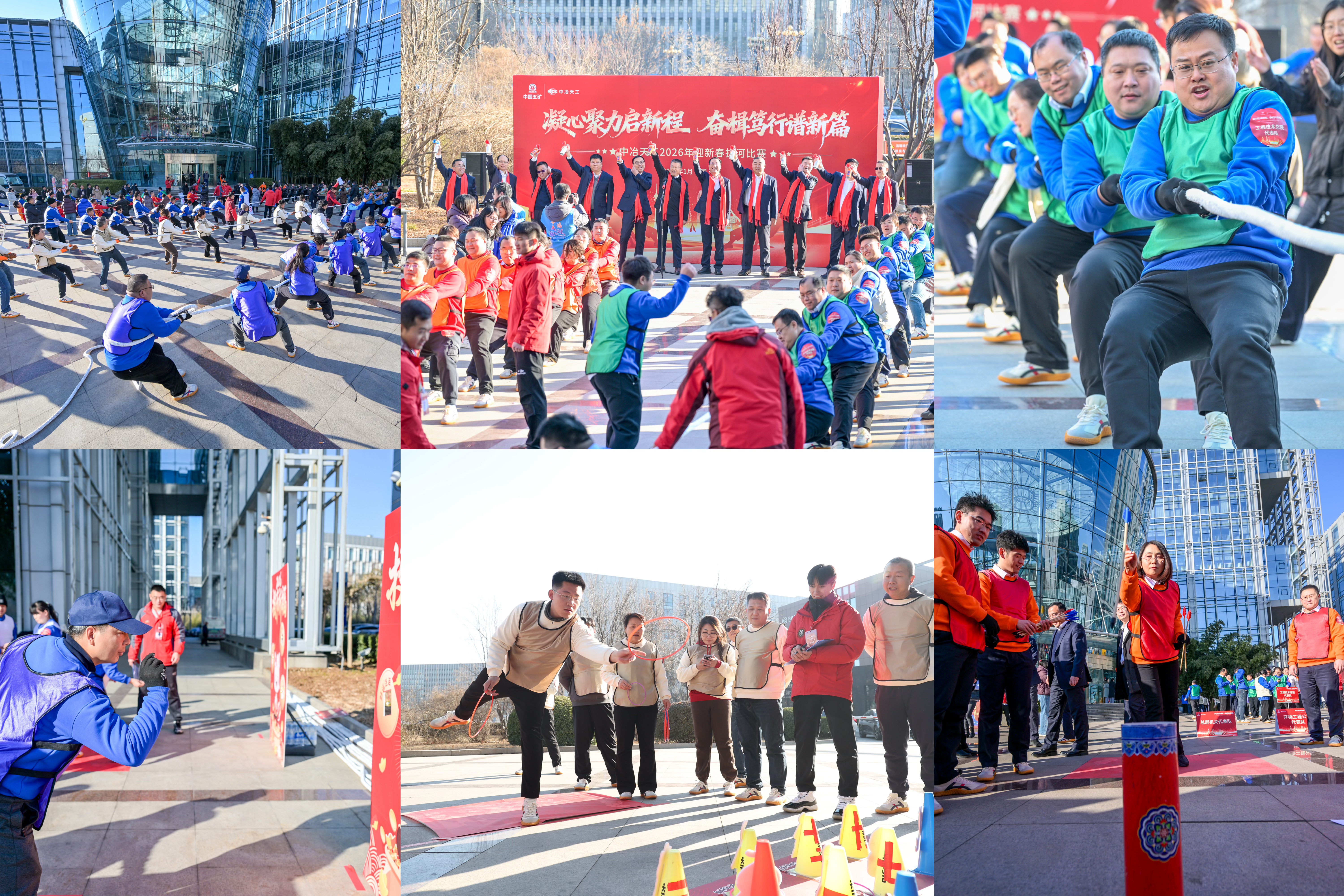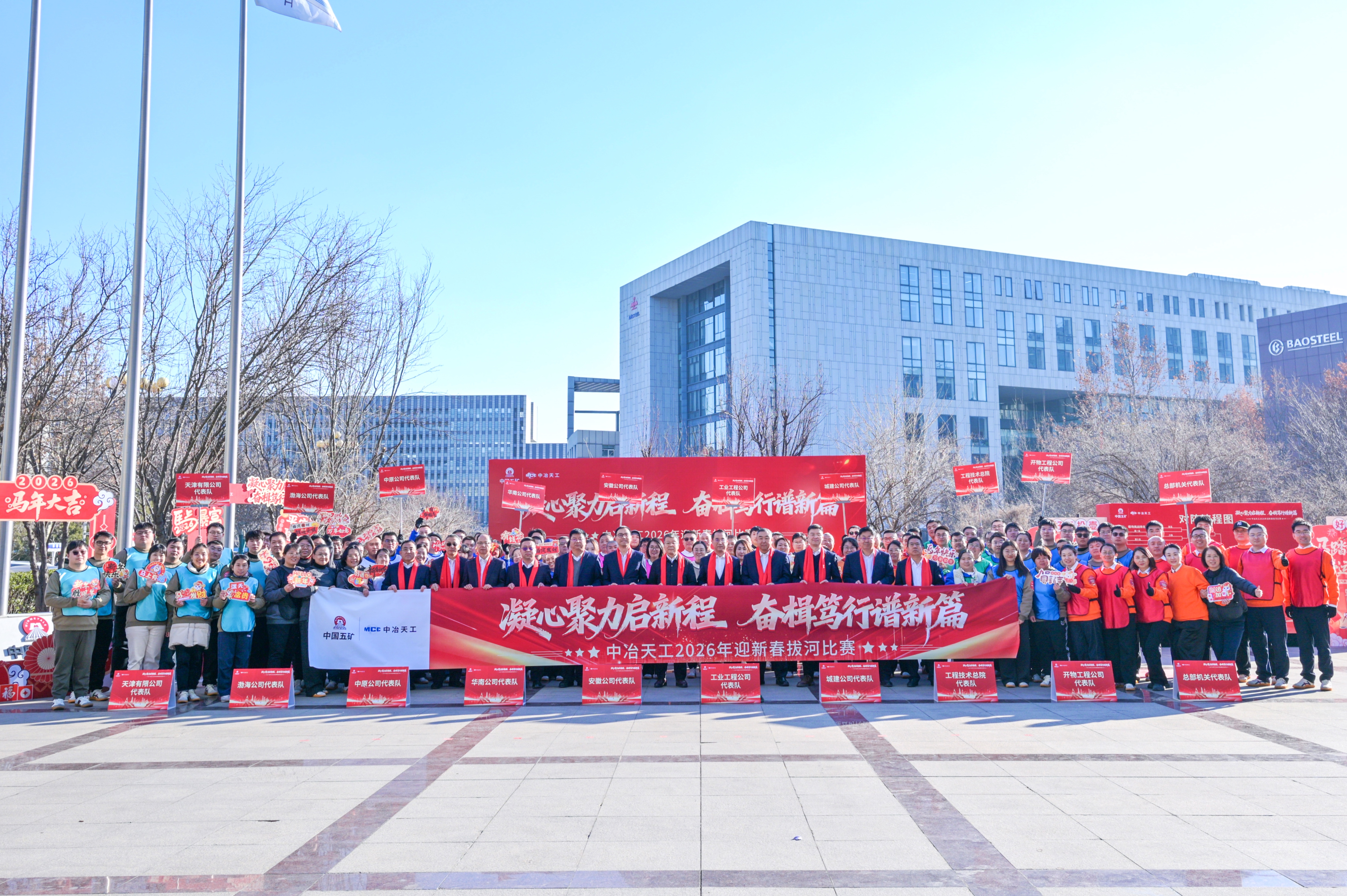新年伊始,為增強企業凝聚力和向心力,激發干事創業熱情,展現員工奮發向上的精神風貌,1月5日,中冶天工組織開展“凝心聚力啟新程,奮楫篤行譜新篇”2026年迎新春拔河比賽。公司黨委書記、董事長高文華出席活動并講話,總經理、黨委副書記奚會祥,黨委副書記、工會主席文科及其他在津領導班子成員、專務經理、非班子高管出席活動,來自二級單位和總部機關的10支參賽隊伍共計110余人參加活動。